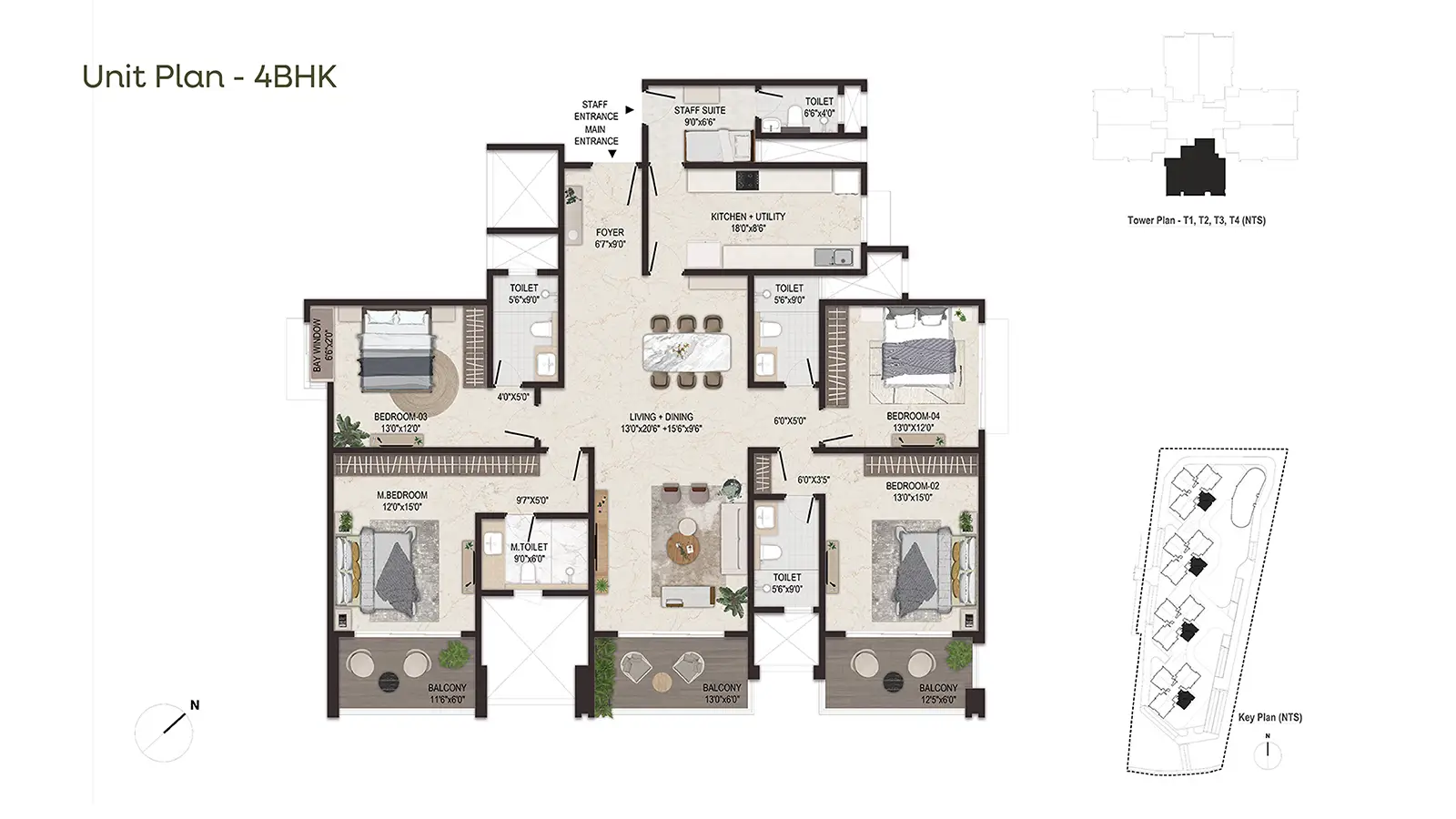 The project is designed with 4 elegantly designed towers that have 2 basements along with a ground floor plus 23 floors each. Each unit is designed with efficient floor planning, ample ventilation, and natural light, creating a sense of openness and privacy. With landscaped gardens, around 70% of open space, eco-conscious design, and extensive community facilities, Embassy Astra Bangalore provides a balance of nature and luxury. It will have some extraordinary amenities like a mini theater, meditation pod, amphitheater, skating rink, step garden, and many more to make every moment memorable and relaxing.